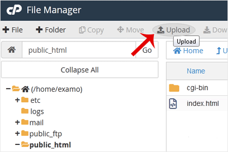 3. In cPanel File Manager, navigate to the directory where you want to upload your files to. For example, should you wish to upload your files to the public HTML directory, you must first go to /public_html. On the left side, in the list of directories, double click on the public_html directory.