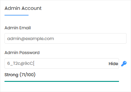 - Admin Username: Your new Fork username (for security reasons, do not use the administrator or the admin username).