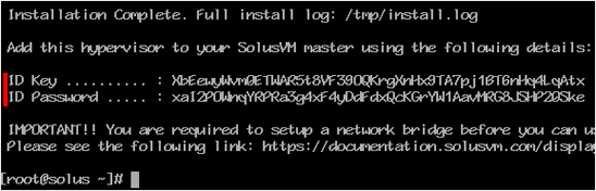 Step 3: Once it completes, it will show you the Slave keys and further instructions for your virtualization type. You can now use these keys to add a node to your SolusVM Master panel. You will need to have a SolusVM Slave license for each node.